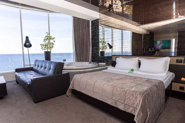Nemo Resort & Spa в Одессе – это пятизвездочный отель, который является уникальным даже по европейским меркам. В распоряжении посетителей есть 95 помпезных номеров с шикарным видом на морские просторы или живописный парк. На балконах размещена мебель из ротанга. В отеле созданы все условия для романтичного или семейного отдыха, а также для деловых гостей. Комнаты выполнены в современном дизайне, оборудованы высококачественной мебелью, с кабельным телевидением, гидромассажной ванной, телефоном, есть сейф и мини-бар. Гостю также полагается халат, тапочки, одноразовая косметика и парфюмерия.